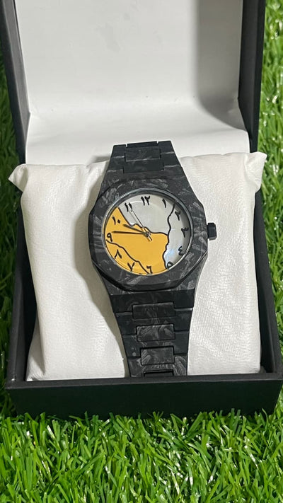 Marbled Black Aura with Abstract Yellow & Crystal White Arabic Dial