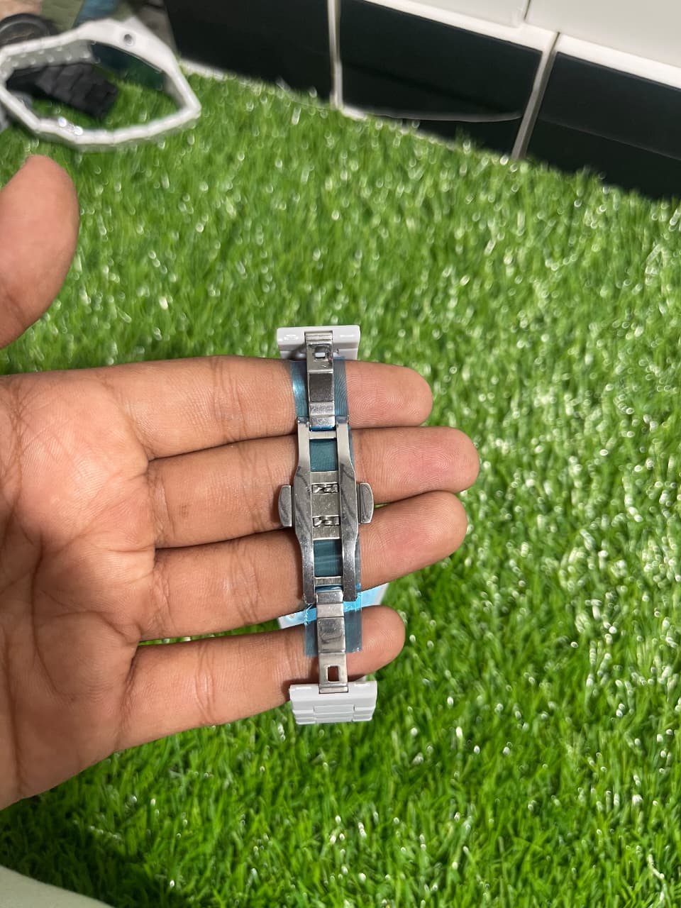 The "White Aura Fiber Aura" Design: Experience pure, crisp elegance with this watch's immaculate white finish. Its monochromatic palette exudes freshness, confidence, and a distinctly modern vibe.