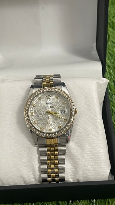 Rolex Style with Dazzling White Dial and Diamond Accents