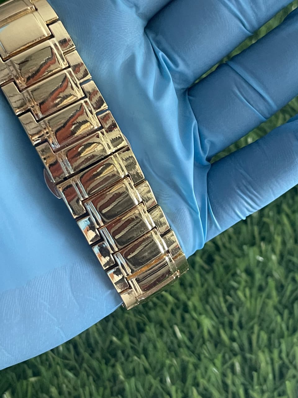 Radiant All-Gold Finish: From its robust case to its meticulously linked bracelet, this watch boasts a stunning, polished gold-tone finish that exudes opulence and prestige.